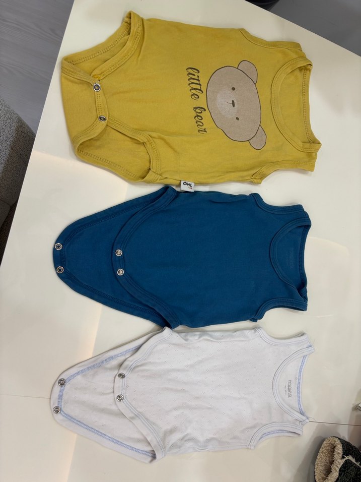 Pastel sarı renkli, ayıcık desenli kolsuz bebek erkek body. Pamuklu, düğmeli ve yuvarlak yaka. Marka: Cilllebear.