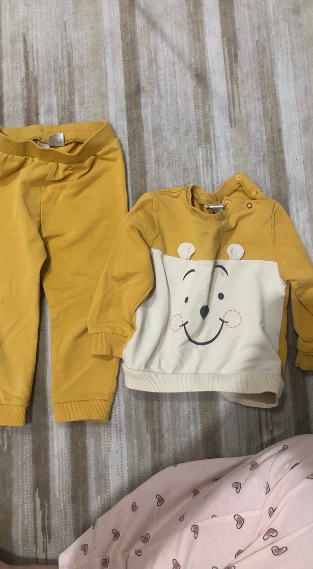 Sarı renkli, uzun kollu ve bisiklet yaka bebek erkek takımı. Yumuşak ve sıcak kumaştan, baskılı ve örme detaylıdır. 12-18 ay dir