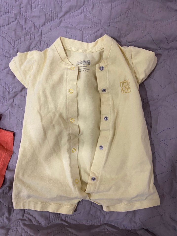 Pastel sarı renkte, kısa kollu, yakalı ve düğmeli pamuklu bebek tulumu. Rahat ve şık sokak stili sunar.