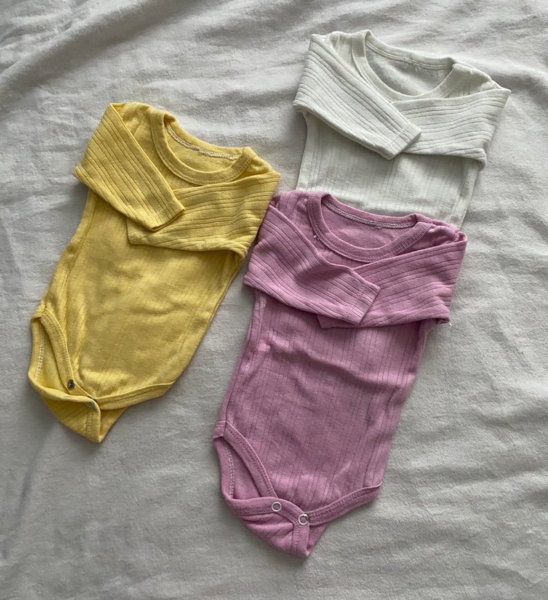 Sarı renkte, uzun kollu, yuvarlak yaka bebek kız body. Rahat ve şık kullanım için tasarlanmıştır.