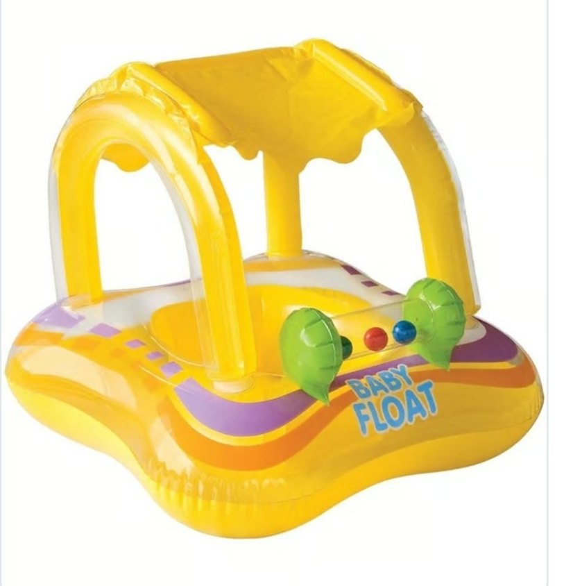 Renkli sarı bebek simidi, gölgelik ve önünde oyuncaklarla suyun keyfini artırır. BABY FLOAT BEBEK YÜZÜCÜSÜ GÖLGELİKLİ TENTELİ Üst kısmındaki gölgeliği sayesinde bebeğiniz güneşin zararlı ışınlarına karşı korur. Oturaklı yapısı ile çocuğunuzun daha geç yorulmasın ısağlayarak suyun üzerinde uzun süre eğlenmesini kolaylaştırır. SUPER THOUGH vinly malzemeden üretilmiştir. Maksimum taşıma kapasitesi: 15kg 0,25mm Yaş grubu: 1-2 yaş arası Ürün Ölçüsü: 81x66cm Kalınlığı : 0,3 mm Kutu Ölçüsü: 20x26,5x5cm
