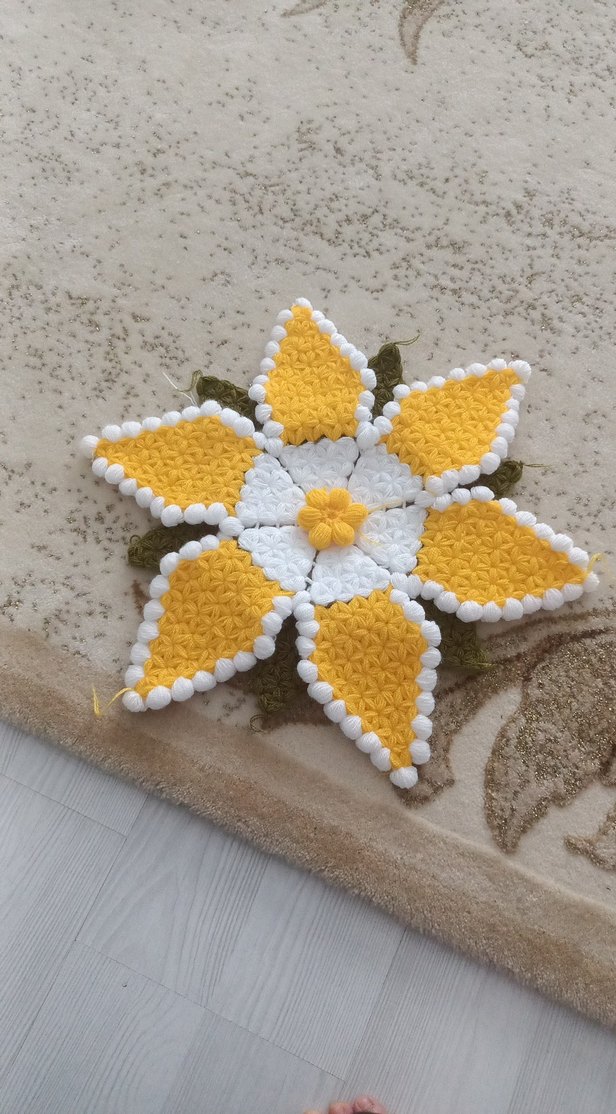 Sarı Beyaz Çiçek Motifli El Yapımı lif