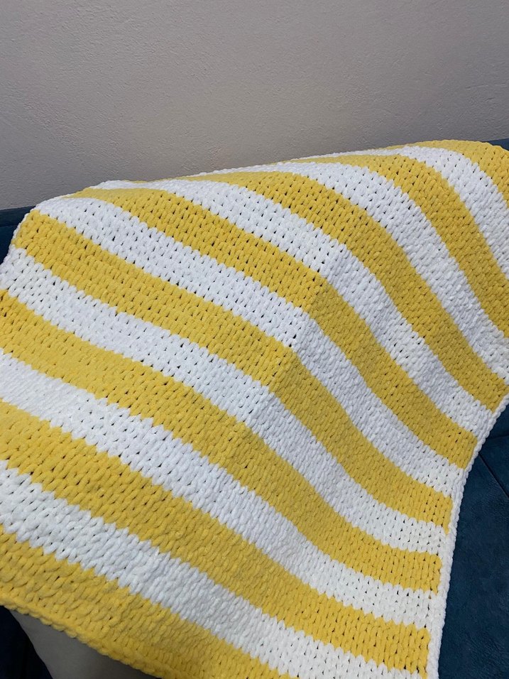 Sarı Beyaz Çizgili Örgü Çocuk Battaniyesi