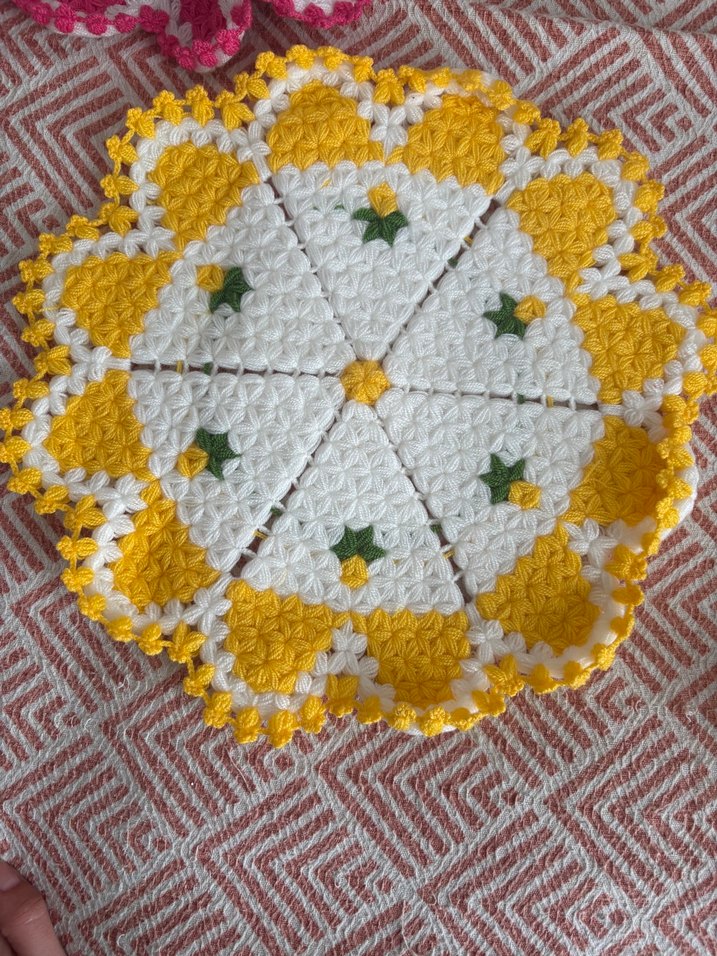 Sarı Beyaz El Örgüsü Yuvarlak Motifli Lif
