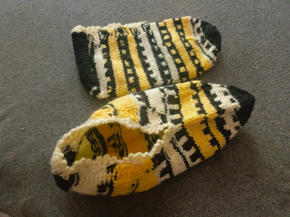 Sarı ve beyaz çizgili desenlere sahip patik çorapları. Örme yapısıyla rahat bir kullanım sunar.