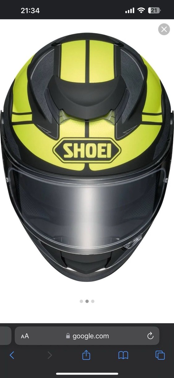 Sarı renkli, parlak baskılı ve tokalı kapamalı biker motosiklet kaskı. Kauçuk malzemeden yapılmış, minimalist ve sade tasarıma sahip. SHOEI air markası öne çıkar.