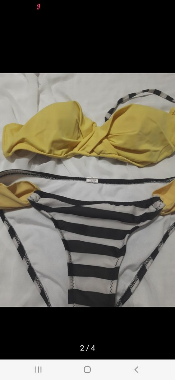 Sarı Bikini Üstü ve Çizgili Alt