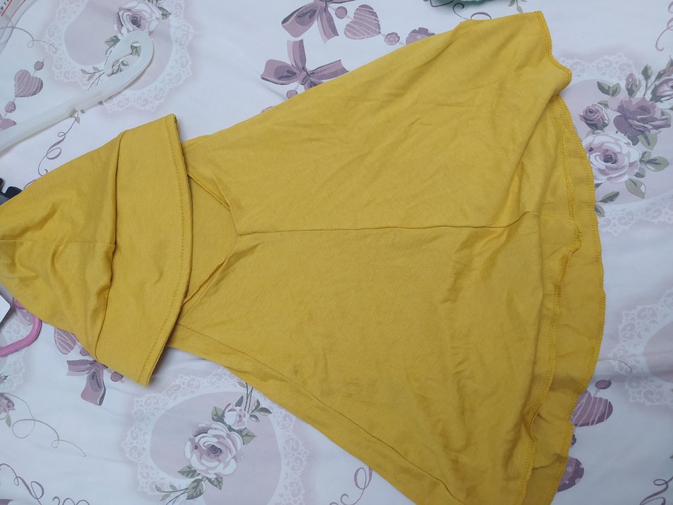 Sarı, kolsuz salaş sapka tesettür salaş kesim ve boğazlı yakalı, drapeli tasarımla midi boyda. Günlük sokak stili için uygundur.