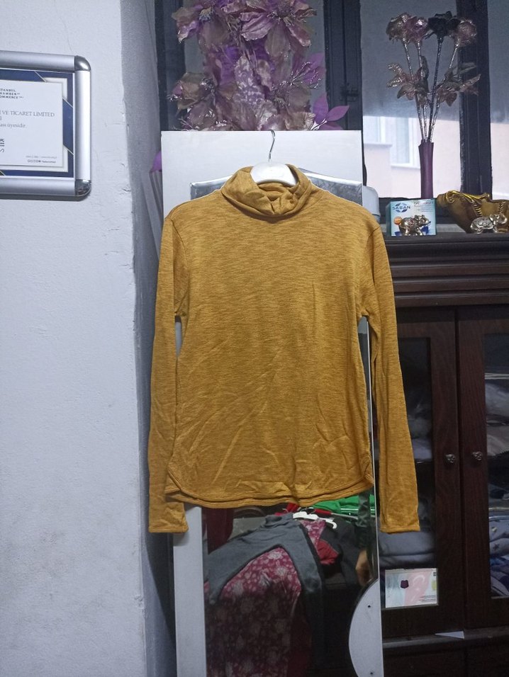 Sarı Boğazlı Uzun Kollu Kadın Triko