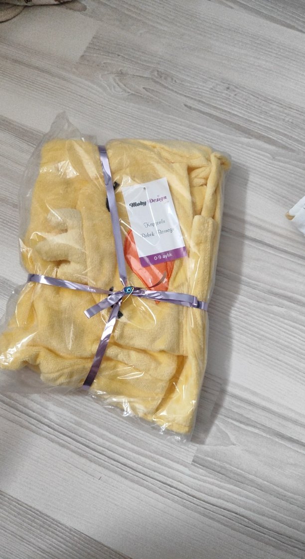Pastel sarı renkte, bohem desenli ve yumuşak dokulu bornoz.