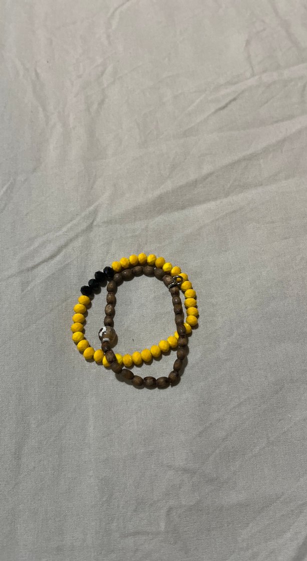 Sarı ve kahverengi boncuklardan oluşan, minimalist ve retro tarzda günlük kullanıma uygun bileklikler.