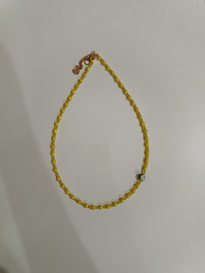 SARI BONCUKLU YEŞİL SEDEF GÖZ KOLYE