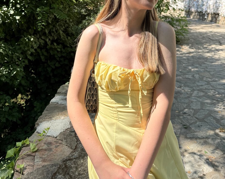 Sarı Butter Yellow Midi Askılı Fırfırlı Kadın Elbise