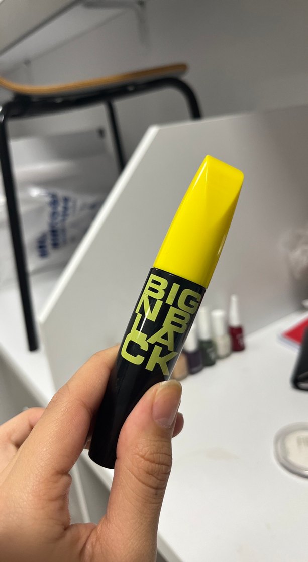 Parlak sarı kapaklı ve büyük harflerle yazılmış siyah tüplü maskara, makyajınıza renkli bir dokunuş katıyor.