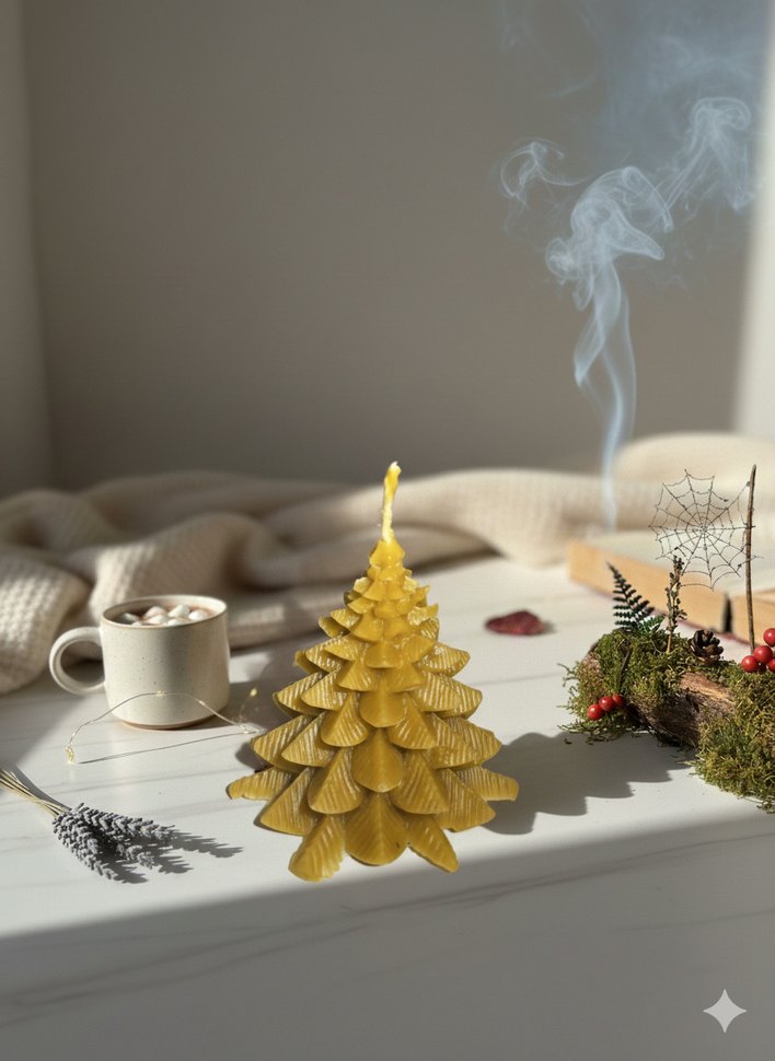 Sarı çam ağacı şeklinde mum, sıcak bir atmosfer yaratır. ️ Doğal balmumundan yapılmıştır. Kraliçenin_arıları ig Beemine