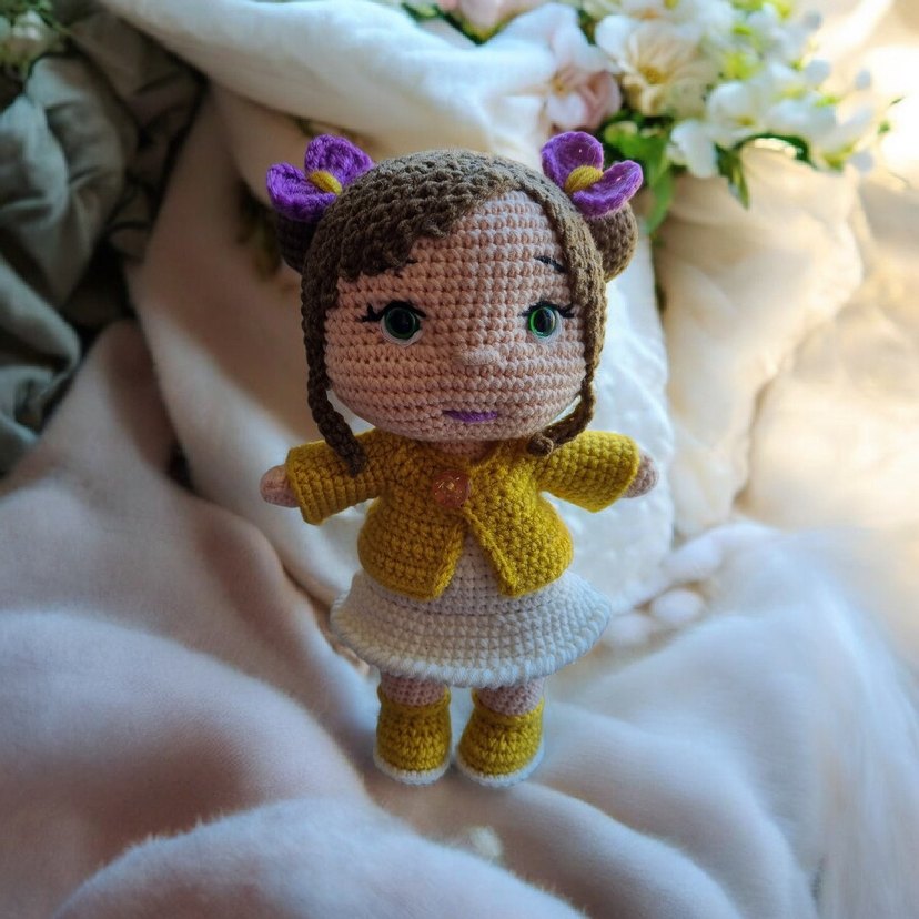 Sarı Ceketli Örgü Oyuncak Bebek 24 cm