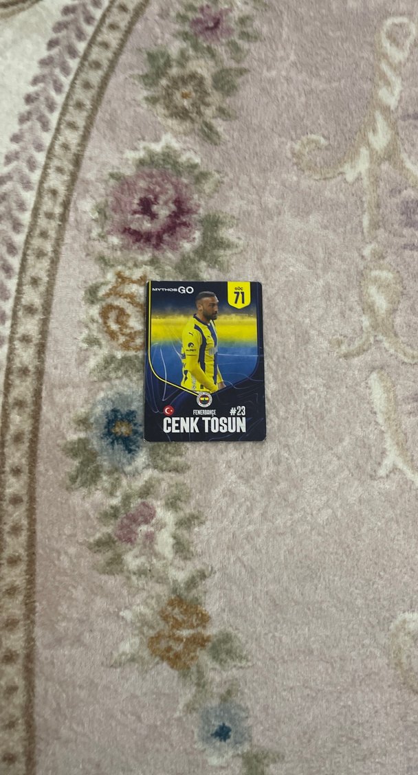 Sarı renkli, üzerinde Cenk Tosun ve 71 numara bulunan hafıza kartı. Futbolcu görseli ve ilgili bilgiler içerir.⚽
