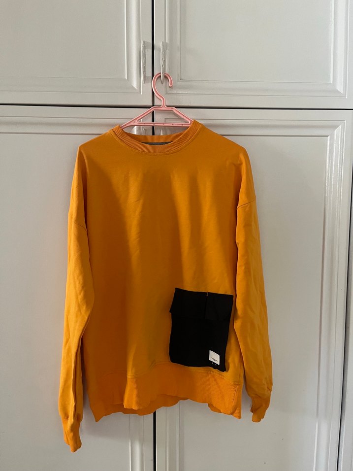 Sarı renkli, uzun kollu ve yuvarlak yaka kadın sweatshirtü. Rahat kesimli ve midi boyda, siyah cep detayı bulunur. Yumuşak ve sıcak kumaştan üretilmiştir.