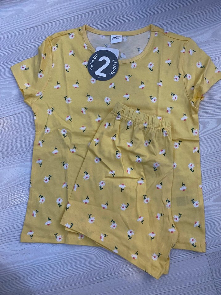 Sarı, pastel çiçek baskılı, düğmeli, kısa kollu, bol kesim kız tişörtü. Yumuşak sentetik kumaştan, günlük rahat tarz için uygundur.