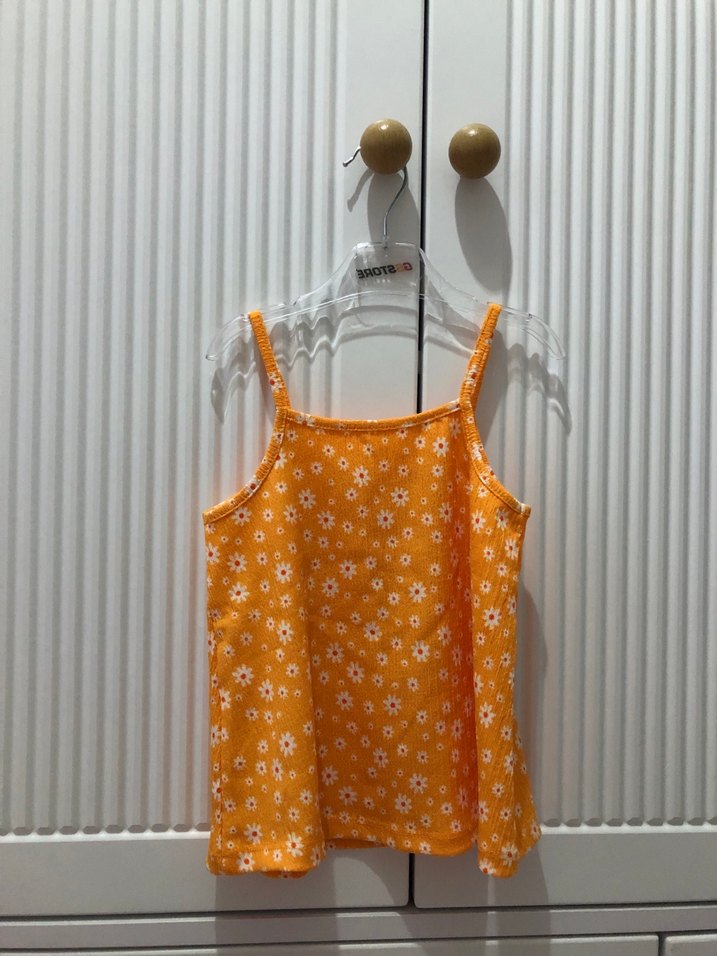 Sarı Çiçek Desenli Askılı Kız Elbisesi