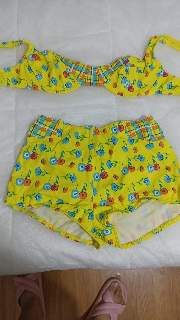 Sarı Çiçek Desenli bikini