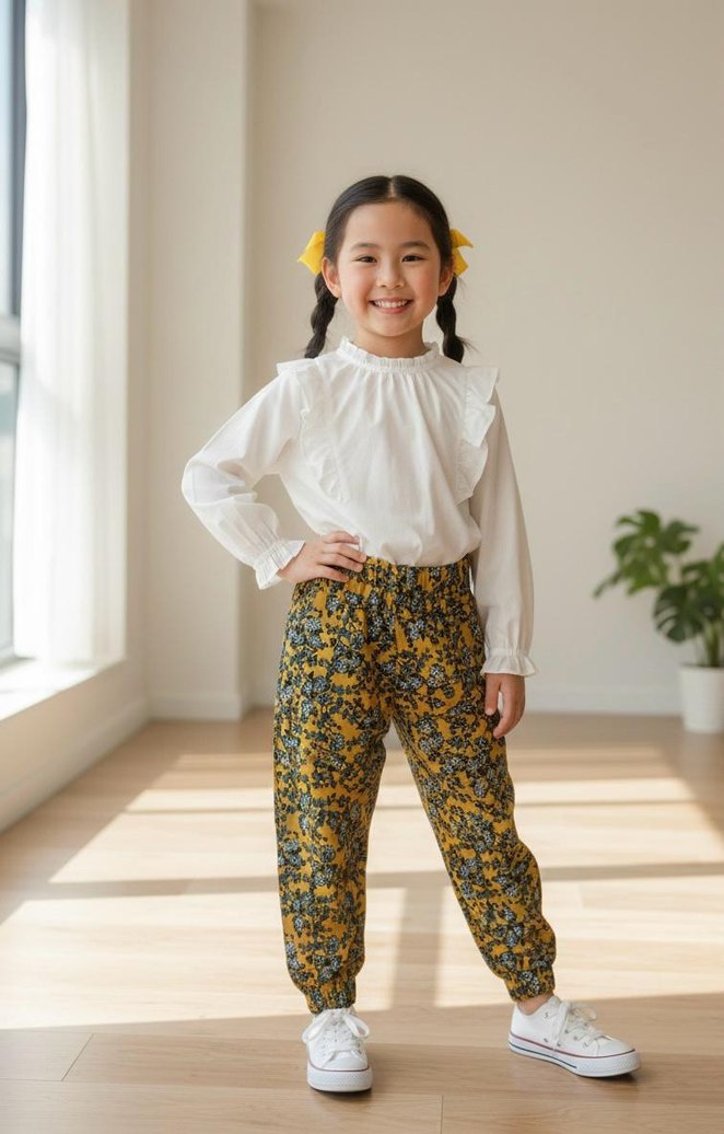Sarı Çiçek Desenli Bol Kesim Kız Eşofman Altı
