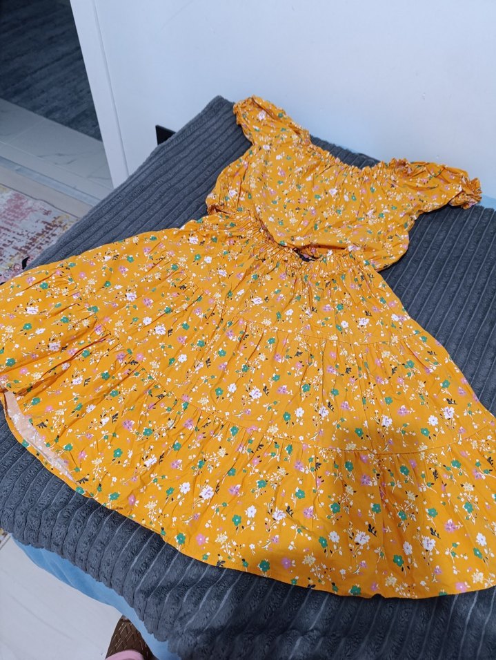Sarı Çiçek Desenli etekli takım