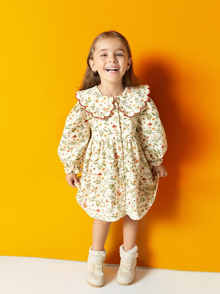 Sarı Çiçek Desenli Fırfırlı Kız Elbisesi