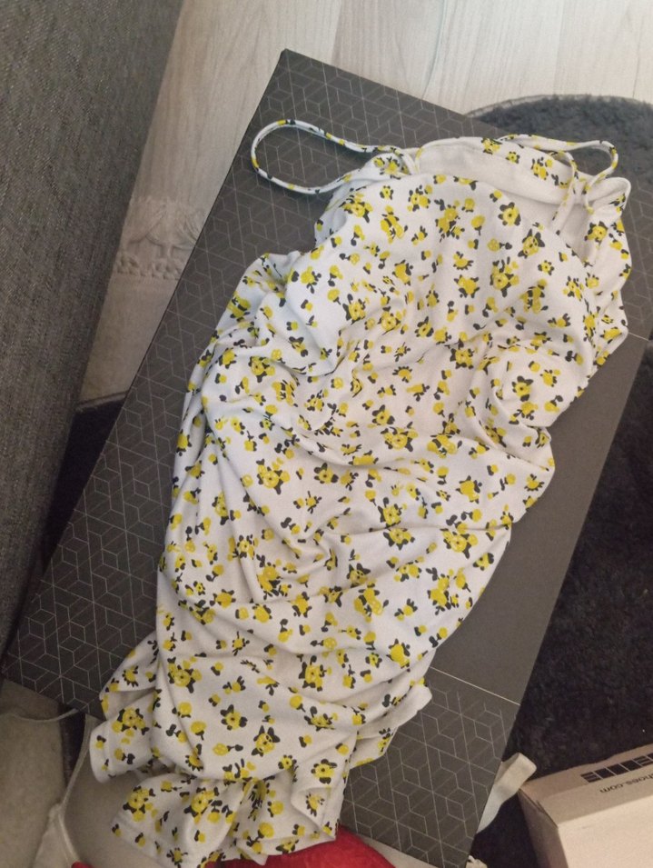 Sarı çiçek desenli, askılı ve , midi boy Rahat ve şık tasarım sunar.