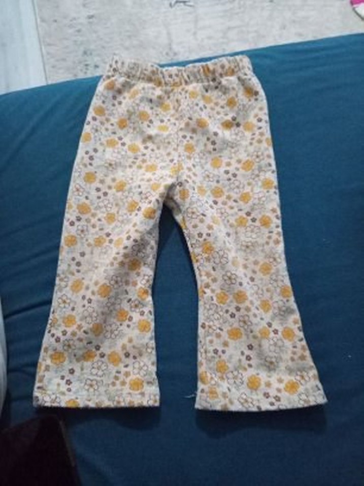 Sarı çiçek desenli, düğmeli, bol kesim kız çocuk taytı, yumuşak ve sıcak kumaştan üretilmiştir.
