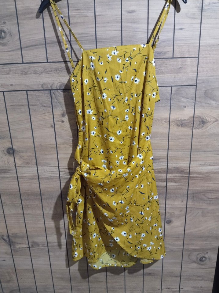 Sarı mini elbise, ince askılı sırtı bağlamalı dilerseniz ölçü verebilirim