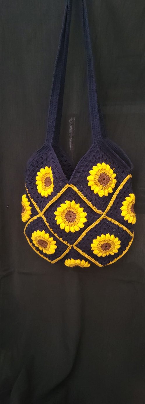 Örgü işlemeli, koyu sarı çiçek desenli bohem tarzda kadın çantası, günlük kullanıma uygundur. Her renkte sipariş alınır