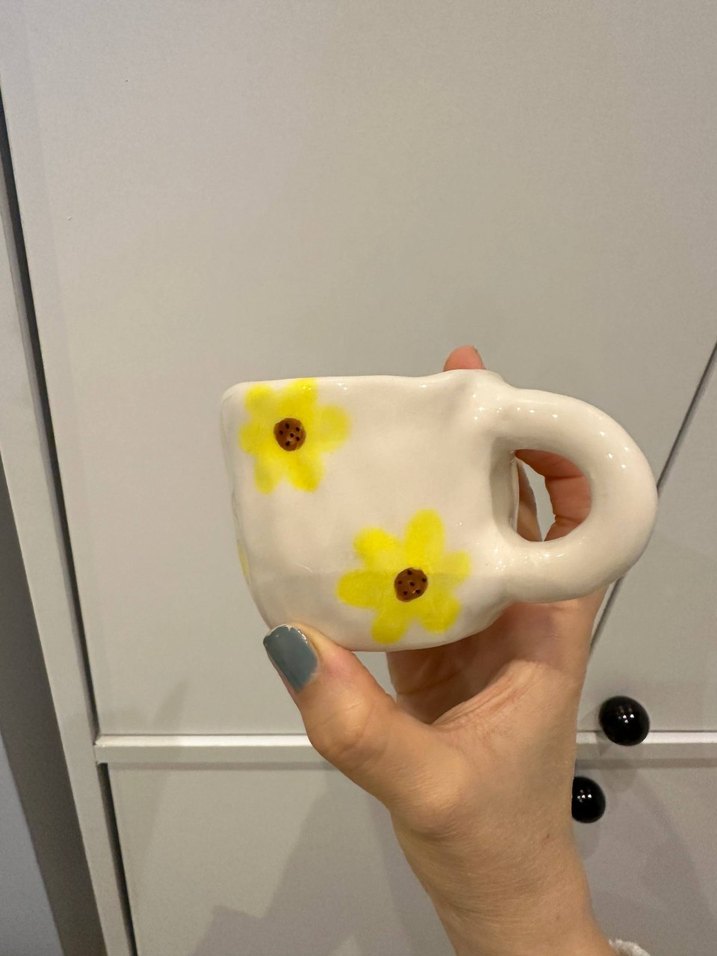 Sarı Çiçek Desenli Seramik Kupa el yapımı