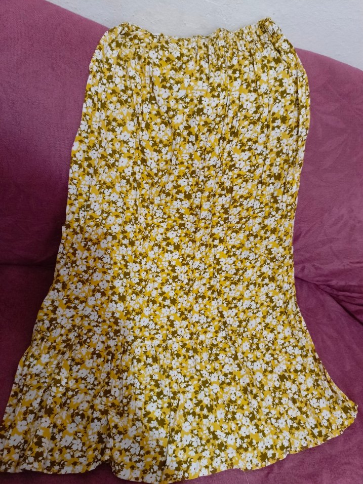 Sarı Çiçek Desenli Uzun Hamile Eteği