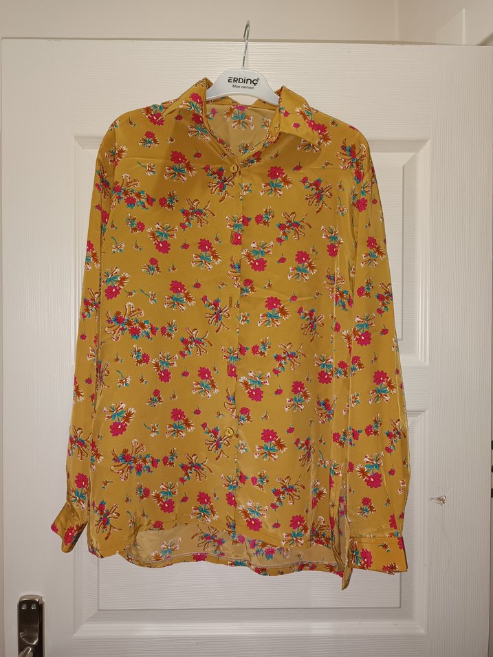 Sarı Çiçek Desenli Uzun Kollu Bohem Gömlek