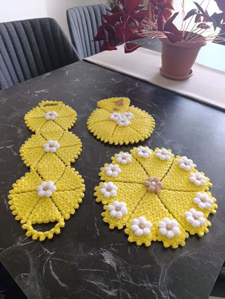 Beyaz ve bej çiçek desenleriyle süslenmiş, el örgüsü sarı lif takımı 3 parçadır tertemiz özenle hazırlanır kısa sürede kargolanır