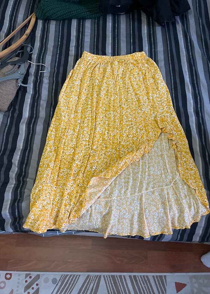 Sarı çiçekli etek yırtmaçlı