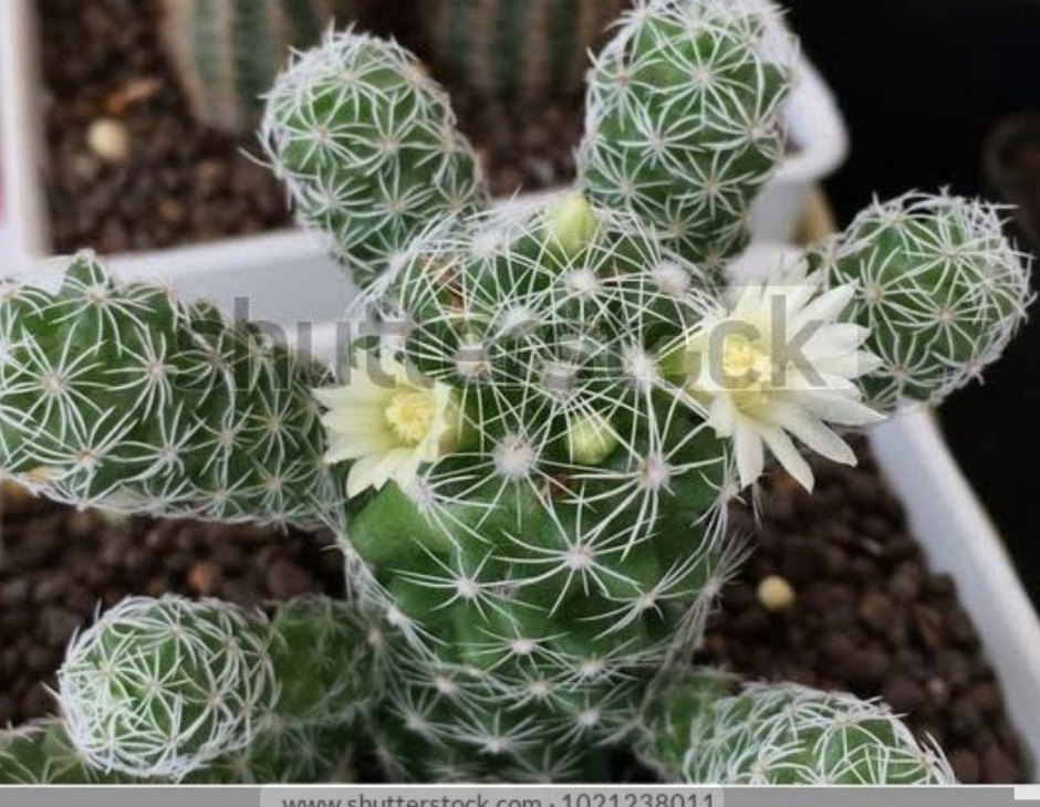 Sarı çiçekleri ve beyaz diken desenleriyle renkli bir kaktüs bitkisi. Her ortama doğal bir dekoratif dokunuş katar.