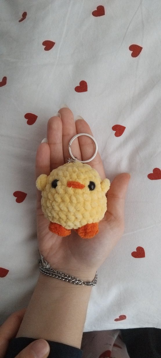 Yumuşak dokulu, kabartmalı sarı anahtarlık, küçük civciv şekilli, sade ve renkli tasarım.