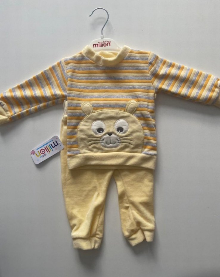 Sarı Çizgili Kadife Erkek Bebek Takımı