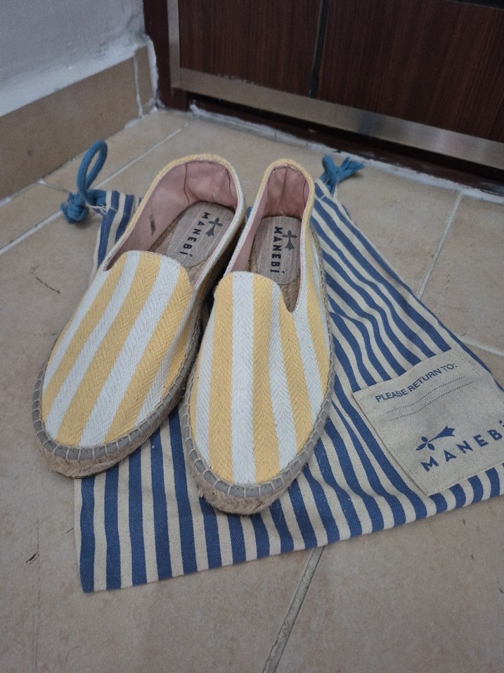 Sarı çizgili kadın espadril, dolgu topuklu ve pileli tasarıma sahip. Günlük kullanıma uygun, bohem tarzda ve Paris esintili.