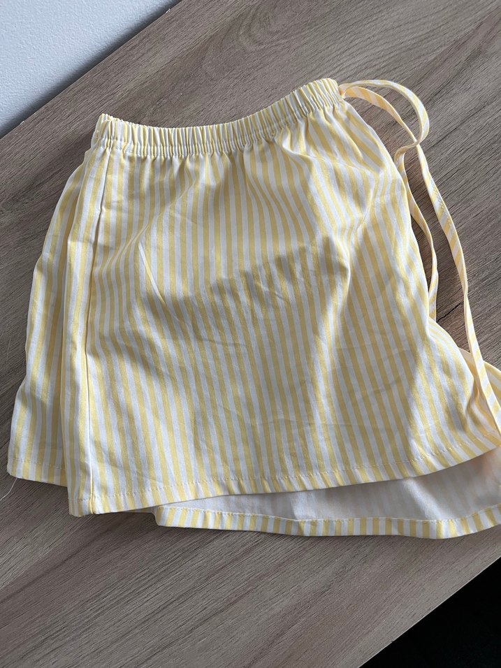 Sarı Çizgili Mini Saten Şort