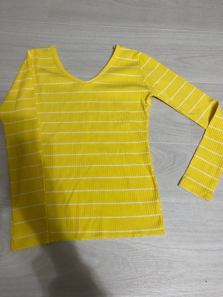 Sarı Çizgili Uzun Kollu Kadın Bluz