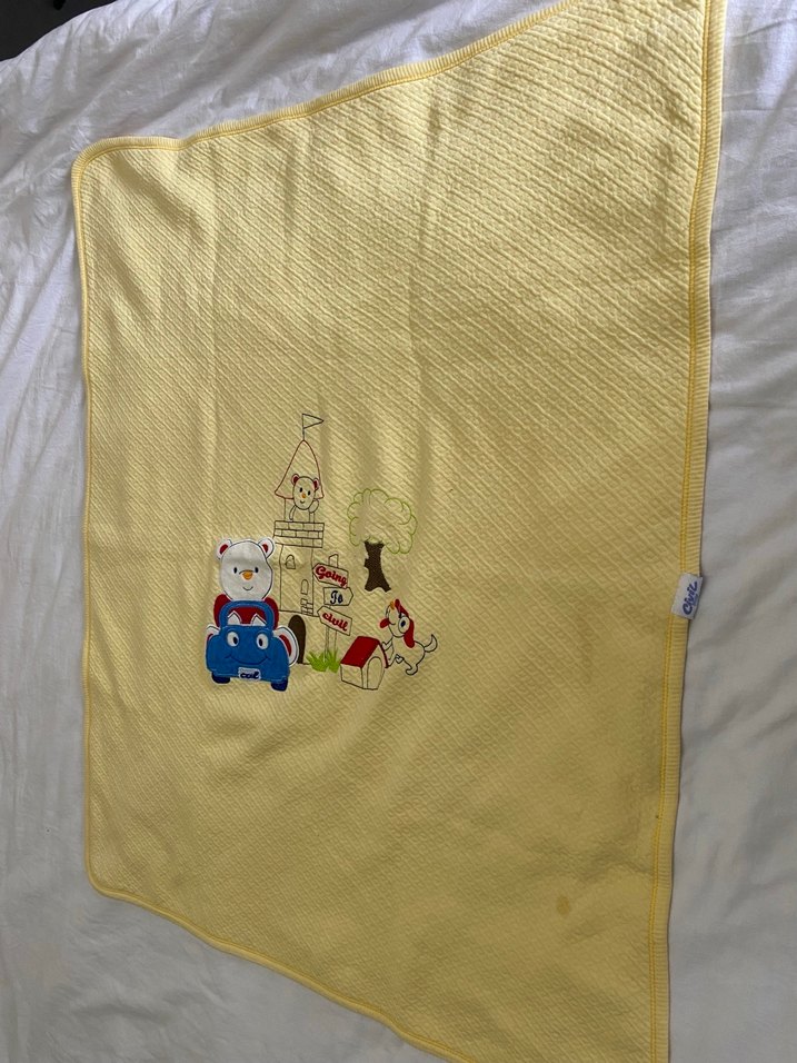 Sarı bebek battaniye, lekelerini gösterdim