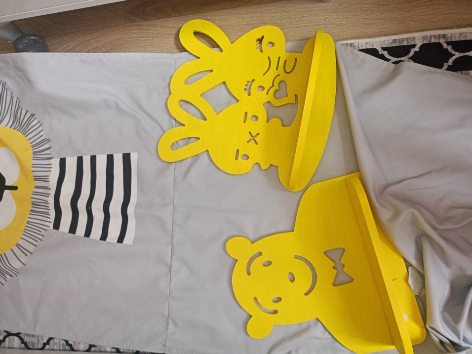 Renkli sarı çocuk rafı, sevimli hayvan figürleri ile çocuk odasına neşeli bir dokunuş sağlar. 40 cm kadar iki adet