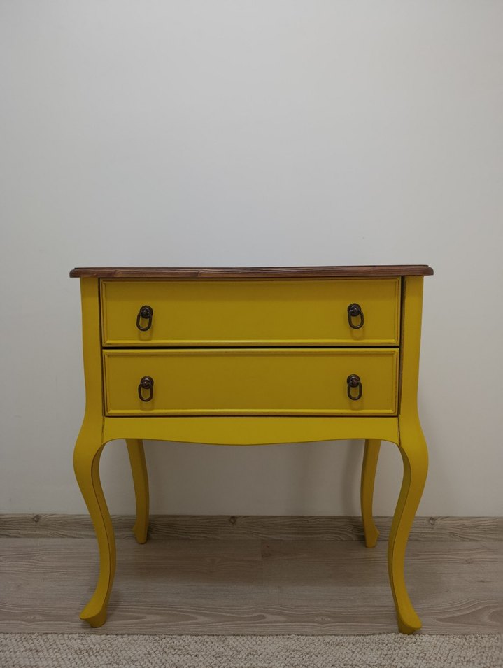 İki çekmeceli,kıvrımlı ayaklara sahip.Çizik vs yok istenilen renkte boyanabilir. Mdf ürünüdür.Dresuar olarak ta kullanılabilir. ÖLÇÜLER :GENİŞLİK:65 EN:38 BOY:70 CM TAKAS YOK