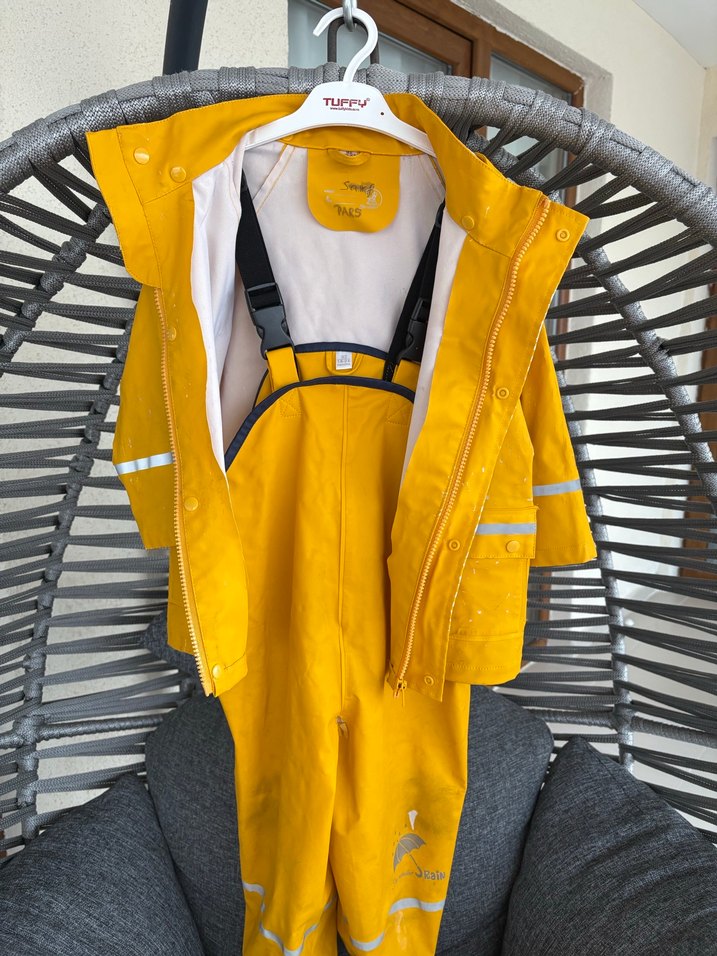 Ayarlanabilir askılı, reflektör detaylı sarı çocuk tulumu. Çıtçıtlı ve fermuarlı ceket, fotoğraf da görünen deformasyon mevcuttur. İç astarı sağlam olduğu için halen kullanılabilir durumda.3 -5 yaşa uygun olduğunu düşünüyorum. Ölçü isterseniz mesaj atınız
