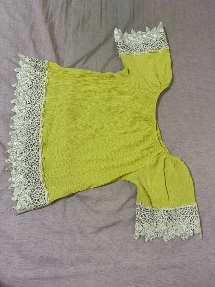 Sarı Dantel Detaylı Bohem Mini Bluz
