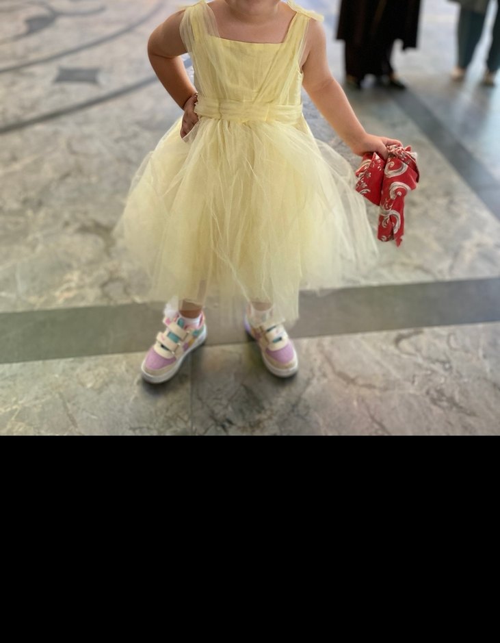 Sarı Dantelli Kız Çocuk Tül Elbise