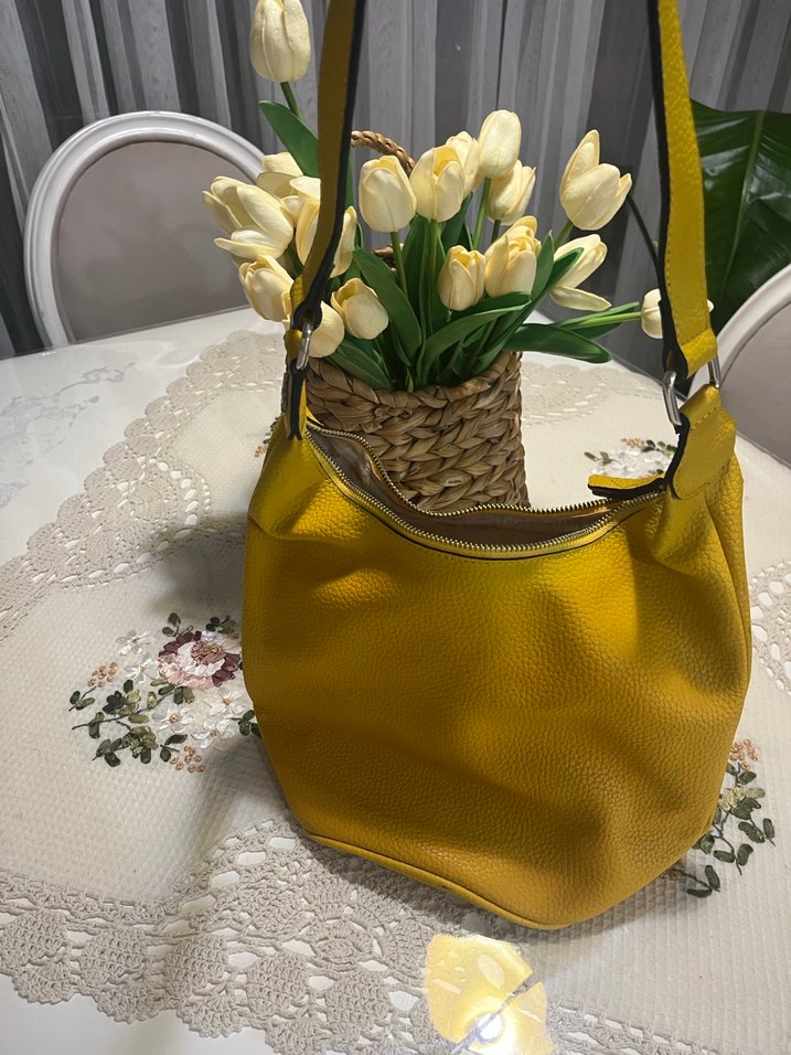 Sarı Deri Fermuarlı Kadın Çantası